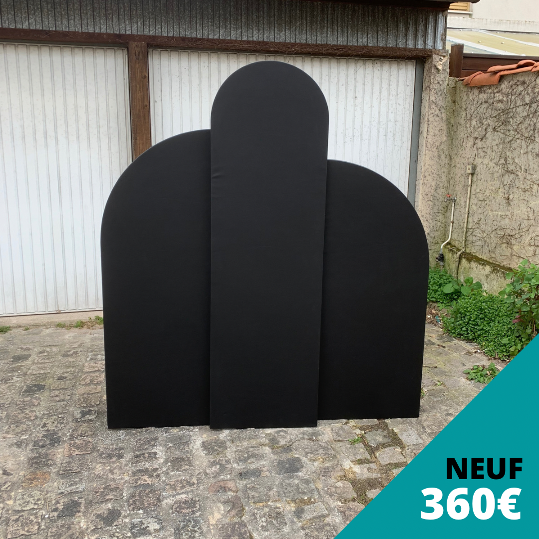 Backdrop 3 panneaux en simili cuir noir avec pieds arrières